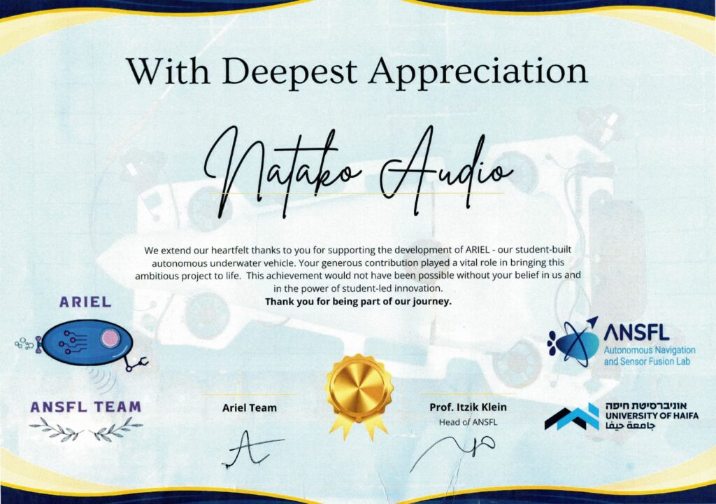 We were honored to support the development of ARIEL, a student-built autonomous underwater vehicle, as part of an academic project at the University of Haifa’s Autonomous Navigation and Sensor Fusion Lab (ANSFL).